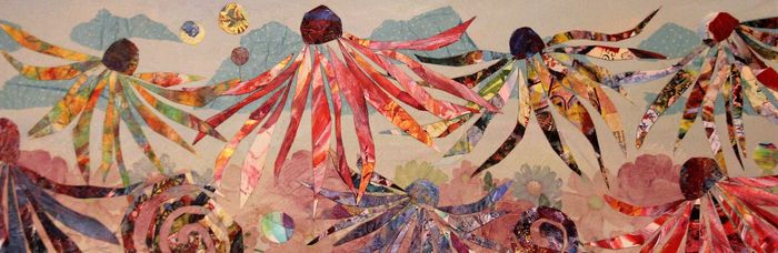 The magic of art never grows old. I create vibrant, whimsical, nature-inspired paintings out of bits of paper and whatnot. I was 64 when I moved to Woodland Beach and finally had time to devote to my art again. I'm inspired by the every day miracles that surround me: the gardens, beaches, marshes, sunsets, trees, birds and animals. I capture the spirit of things that are fleeting, and make them forever visible.